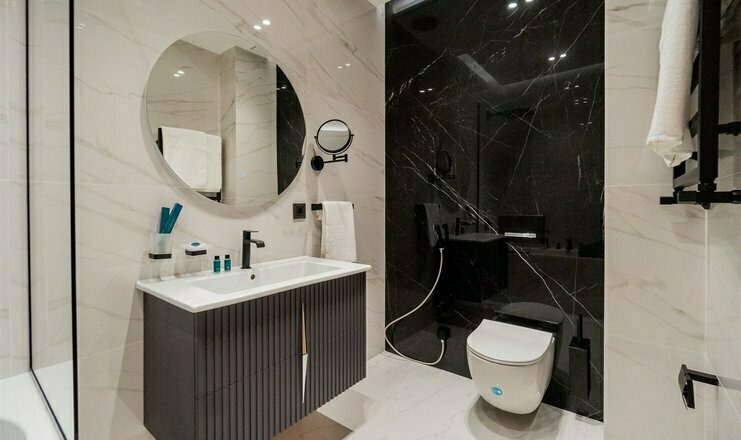 Апартаменты разместились в 10-ти этажном жилом комплексе (с лифтом), возвышающемся в 500 метрах от моря. Во всех номерах оборудована мини-кухня с электроплитой, установлен кондиционер, в ванной комнате для гостей подготовлены косметические наборы, тапочки, фен.