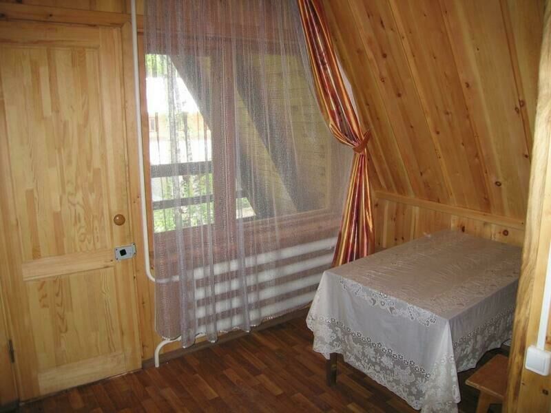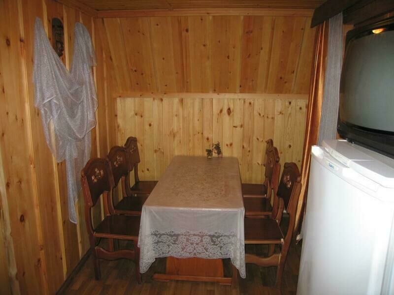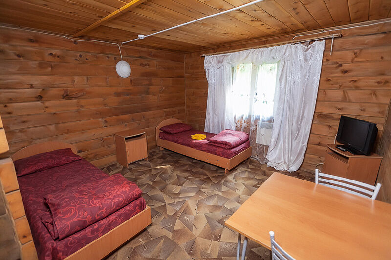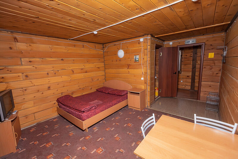 - комната: одна 2-спальная кровать, деревянный уголок (стол с лавочками), столик, тумбочка;