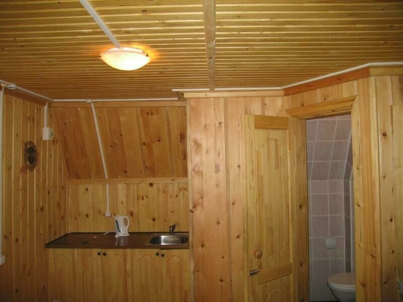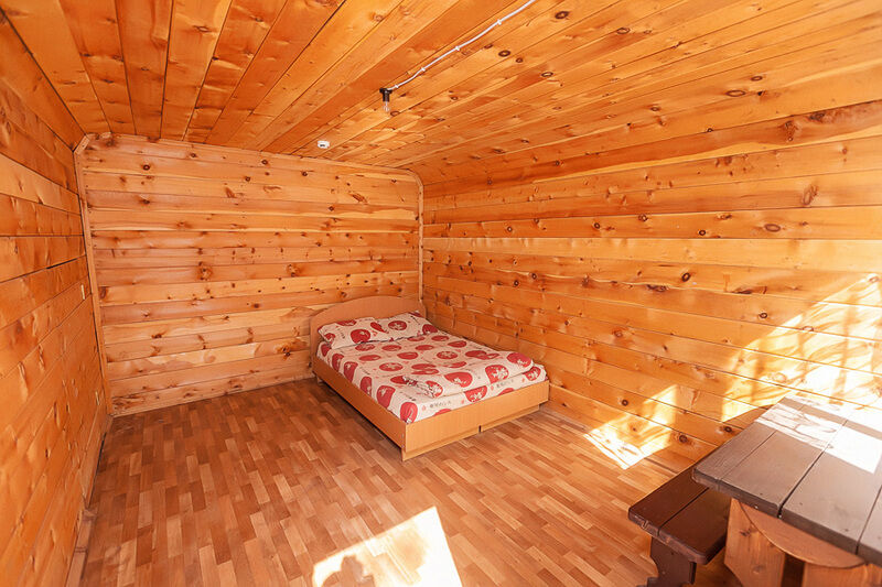- комната: одна 2-спальная кровать или две 1-спальные кровати, стол, скамейки;