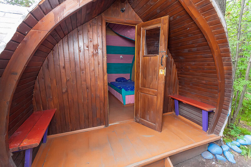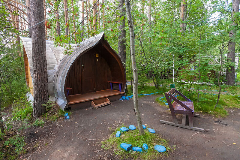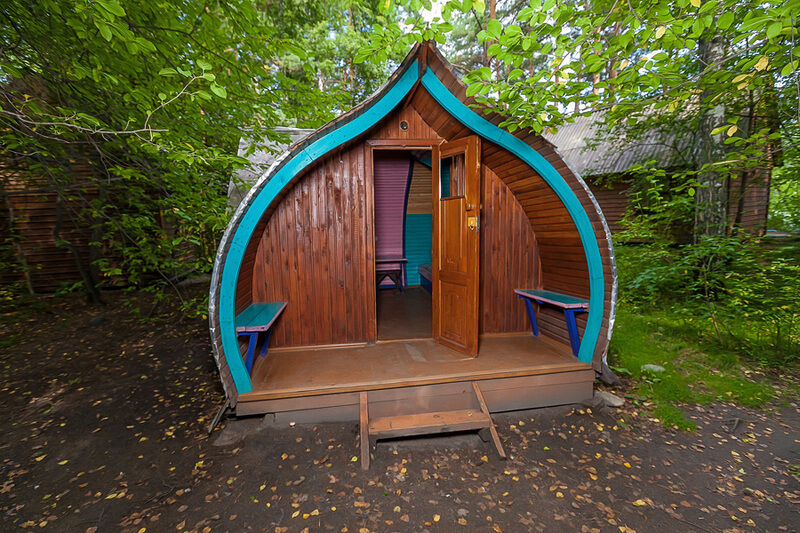 Отдельно стоящий летний домик. Домики расположены вблизи мест для разведения костра.