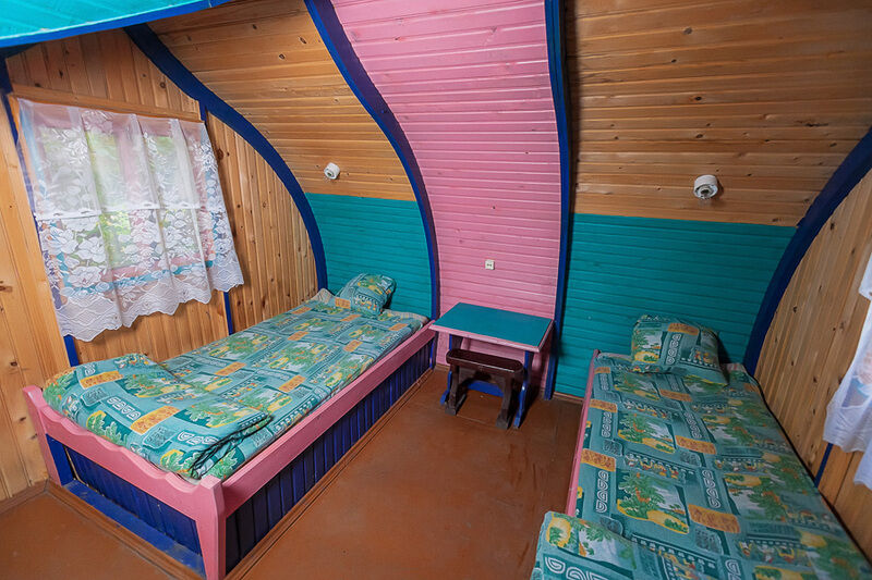 Благоустроенный корпус состоит из номеров с 2-спальными кроватями (7 номеров на первом этаже) и номеров с 1-спальными кроватями (7 номеров на втором этаже).