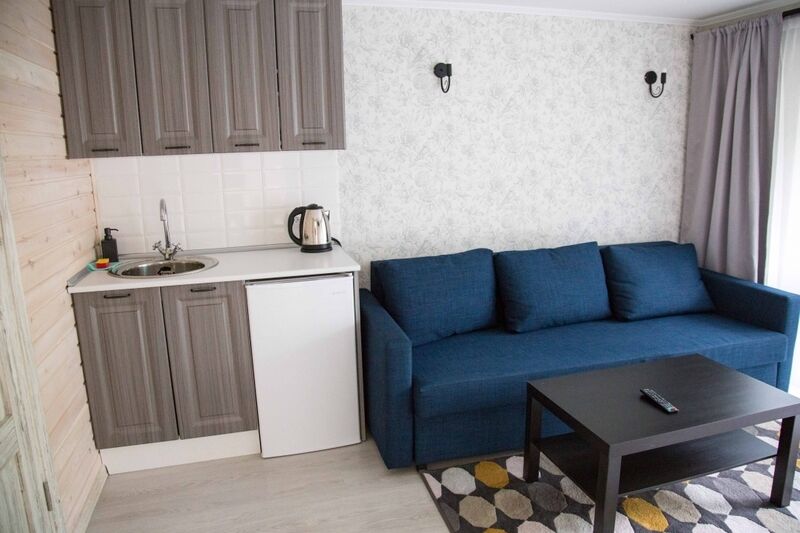 Комплекс занимает благоустроенную территорию, на которой разместились одноэтажные и двухэтажные деревянные коттеджи. В распоряжении гостей уютные двух- и четырехместные номера, оснащенные индивидуальным санузлом с душем. Везде есть плазменный телевизор, электрочайник, а в номерах улучшенных категорий предусмотрены собственные кухни.