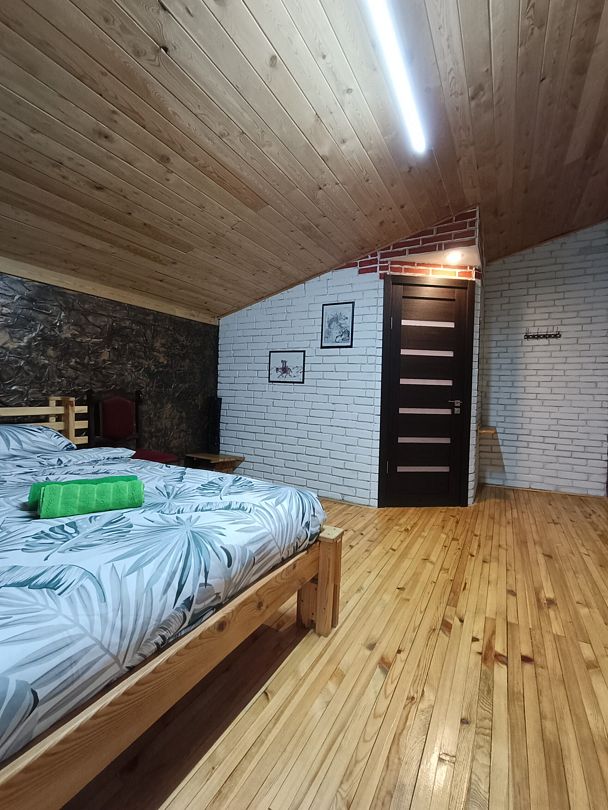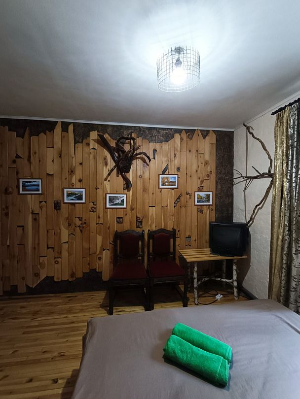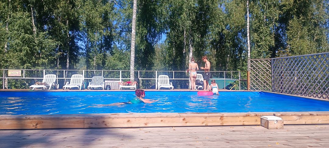 Путешествие с семьейОчень хорошее место для отдыхаВ ОТЕЛЕ ОФИГЕННЫЙ БАССЕЙН!!! Отлично провели время после жарких прогулок))) Номер тоже уютный, свеженький, с запахом дерева (мммм), есть горячая вода, телевизор, на общей территории холодильник, чайник, плита, микроволновка, большая зона барбекю, банька. Парковка ровная. Приедем еще с удовольствием!