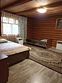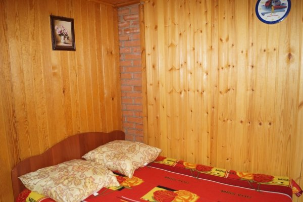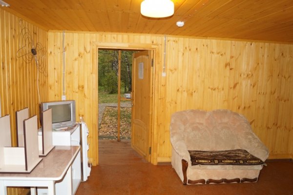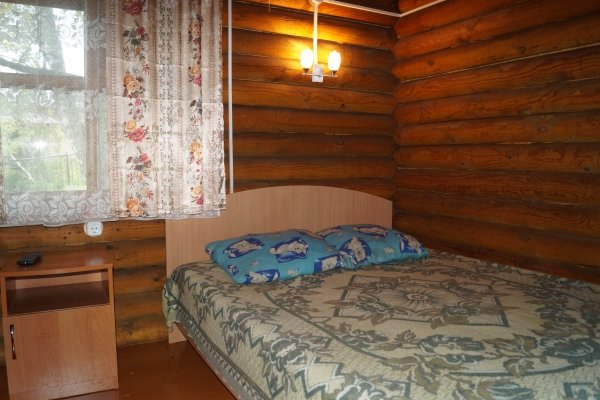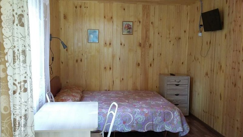Половина отдельно стоящего деревянного дома. Дом на два двухместных номера. Номер состоит из двух помещений: жилая комната и сан. узел. В жилой комнате: двуспальная кровать, стол, стулья, телевизор, холодильник, комод. Дополнительное место — раскладная кровать.