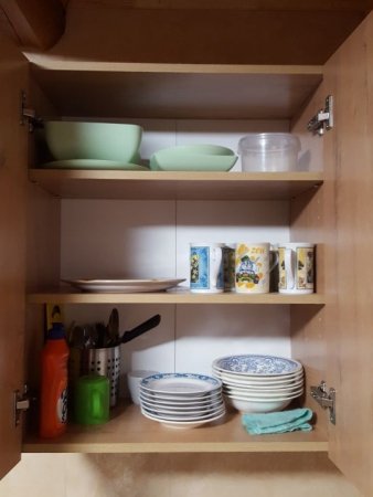 Кухня: газовая плита, холодильник, посуда, кухонные шкафы, стол и стулья. Вторая спальная комната: одна односпальная и одна двуспальная кровати, диван-книжка, телевизор. Сан.узел: туалет, раковина, душевая секция (поддон). Горячая и холодная вода.