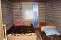 Половина отдельно стоящего деревянного домика с отдельным входом. Дом состоит из трех помещений: сан. узел и две жилые комнаты. В первой комнате: две односпальные кровати, стол, табуреты, полки, зеркало.
