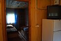 Отдельно стоящий деревяный дом. Состоит из трех помещений: спальная, общая комната (зал), ванная комната. В спальной: двухспальная кровать, тумбочка, комод. В зале: диван-книжка, стол, стулья, чайник, холодильник и телевизор.