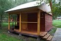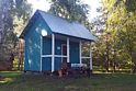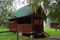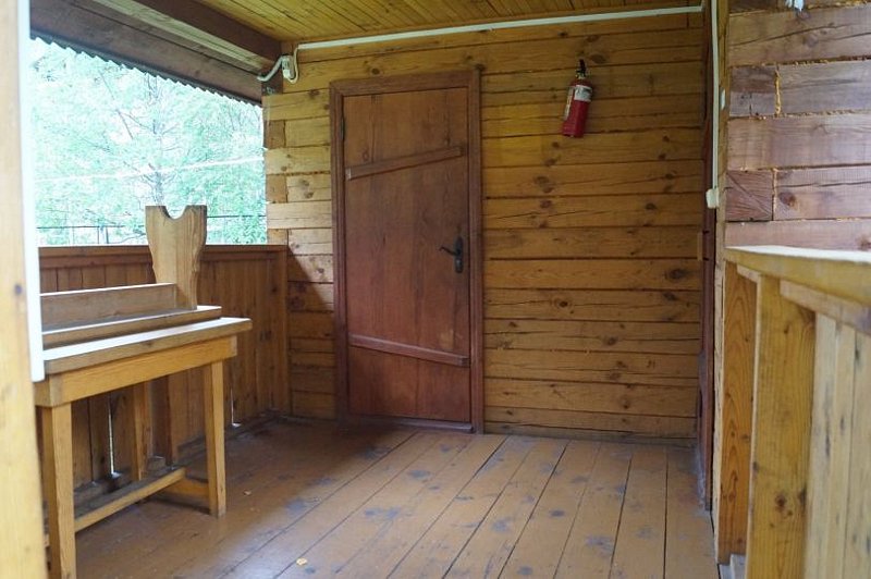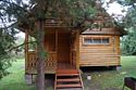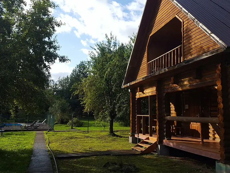 Отдельно стоящий деревянный домик. Расположен рядом с бассейном и детской площадкой. Дом располагает просторной и удобной верандой с столом и скамьями. Дом состоит из двух помещений с отдельными входами: жилая комната и сан.узел.