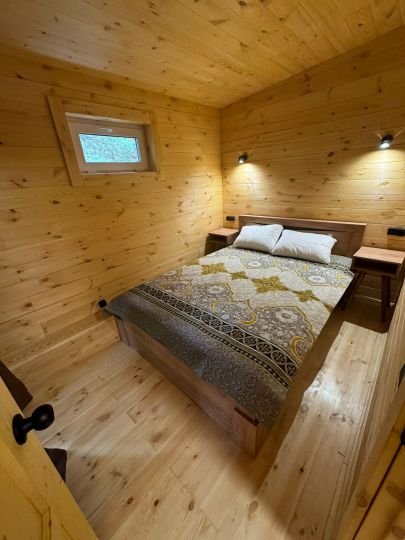 Уютный благоустроенный дом. Год ввода в эксплуатацию — 2024. Общая площадь — 30 кв.м., жилая площадь с сан. узлом — 22 кв.м. Дом рассчитан на 2 основных места + 1 дополнительное (раскладной диван). Два панорамных окна.