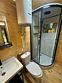 В ванной комнате: душевое отделение, раковина, туалет, зеркало. Горячая и холодная вода. Дополнительное место — диван.
