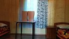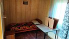 Половина отдельно стоящего деревянного домика с отдельным входом. Дом состоит из трех помещений: сан.узел и две жилые комнаты. В первой комнате: две односпальные кровати, стол, табуреты, полки, зеркало. Во второй комнате: одна двуспальная кровать, холодильник, телевизор, тумбочка вешалки. В сан.узел: раковина с хол.водой, туалет.