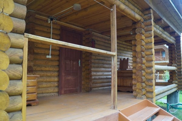 Отдельно стоящий деревянный домик с большой верандой. В доме: двуспальная кровать, тумбочка, стол, табуреты, холодильник, телевизор, полки, зеркало, раковина, вода, туалет. Душ на территории базы отдыха.