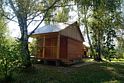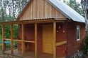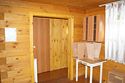 Благоустроенный коттедж (6 мест + 1 доп.) из дерева с большой верандой. Состав помещений: прихожая, душевая, сан.узел, кухня, две спальных комнаты. В первой спальной: три односпальные кровати, тумбочки, вешалки. Кухня: электроплита, холодильник, посуда, кухонные шкафы, диван, стол и стулья.