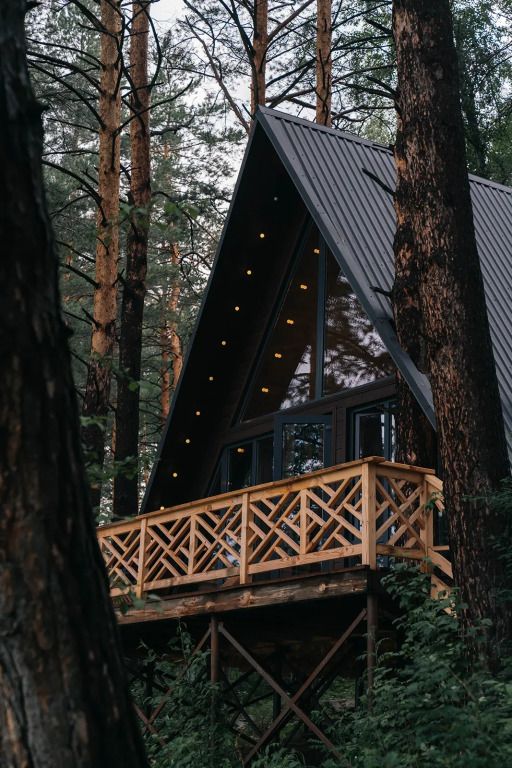 A-Frame с одной спальней и камином на террасе