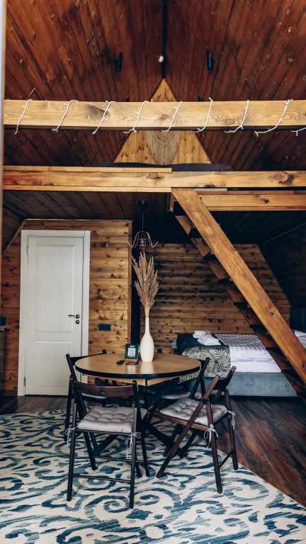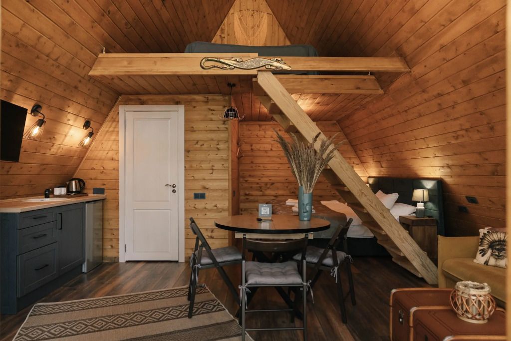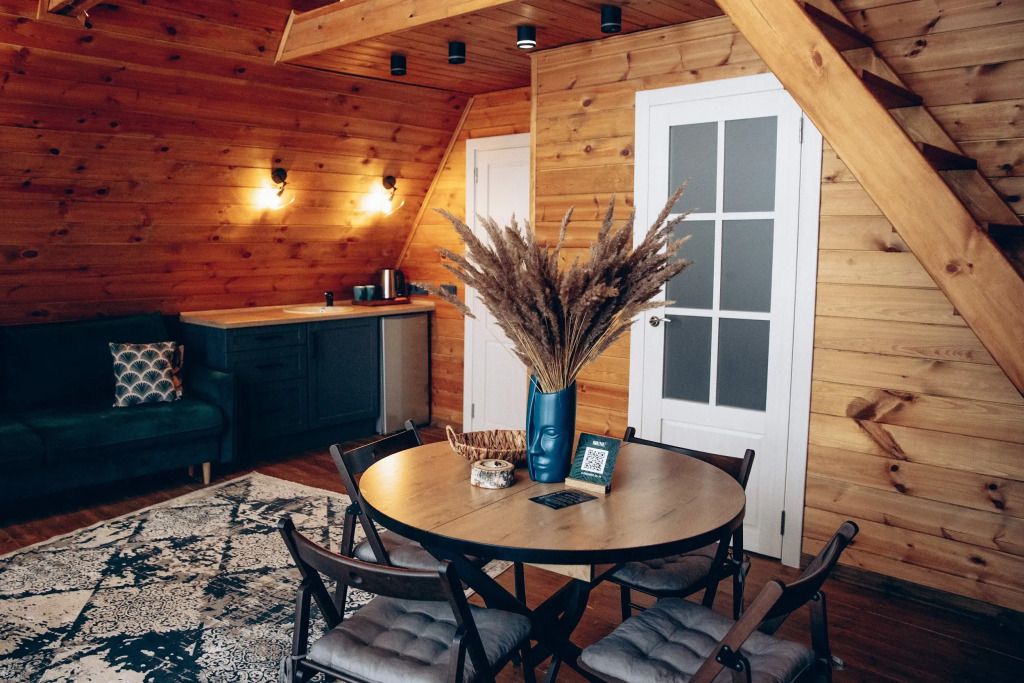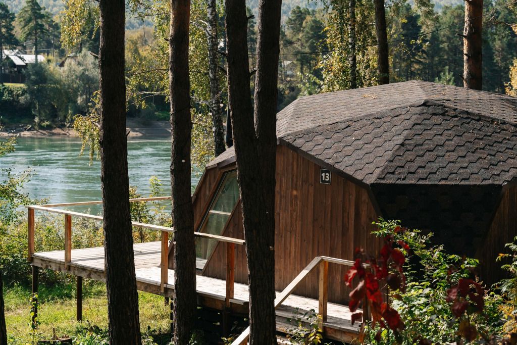 Для проживания гостей предлагаются дома в стилях A-Frame и Барнхаус. Это уютные домики с дровяными каминами, гостиными и столовыми зонами, мини-кухнями, ванными комнатами с теплыми полами, а также террасами и панорамным видом на Катунь и горы. Вы сможете расслабиться на террасе, наслаждаясь свежим воздухом и красотой природы.