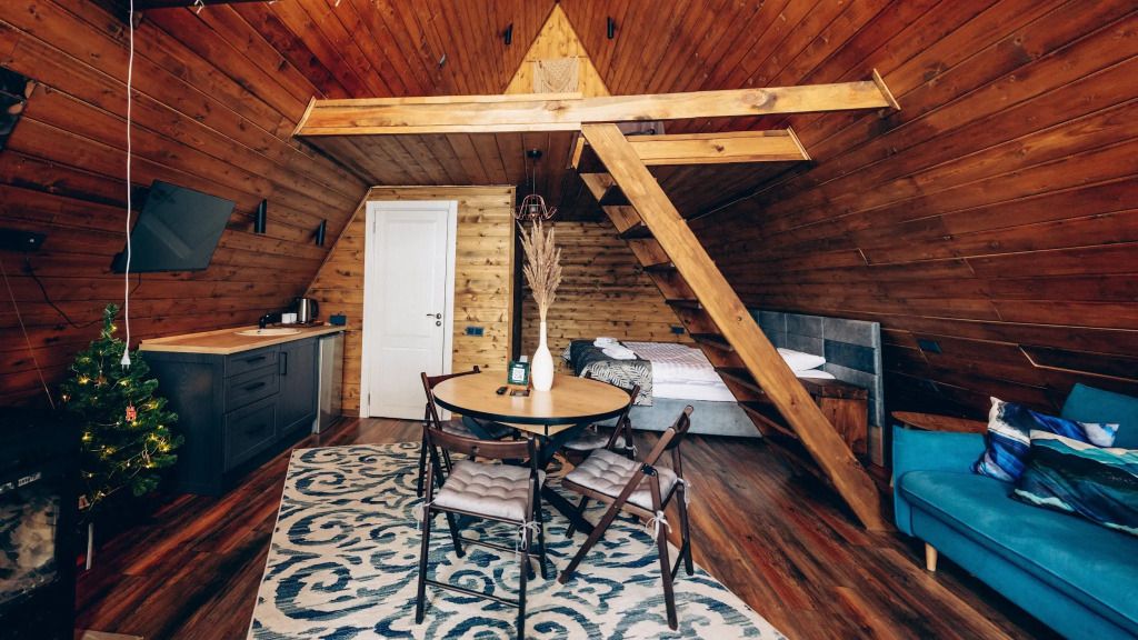 Большой A-Frame с двумя спальнями и камином (до 6 чел)