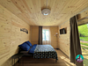 Внутри домика расположена комфортная кровать 140х200, шкаф, холодильник, чайник, телевизор, микроволновая печь, душ с горячей/холодной водой, туалет, ванные принадлежности.