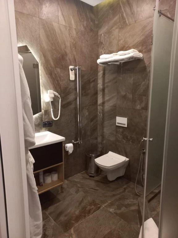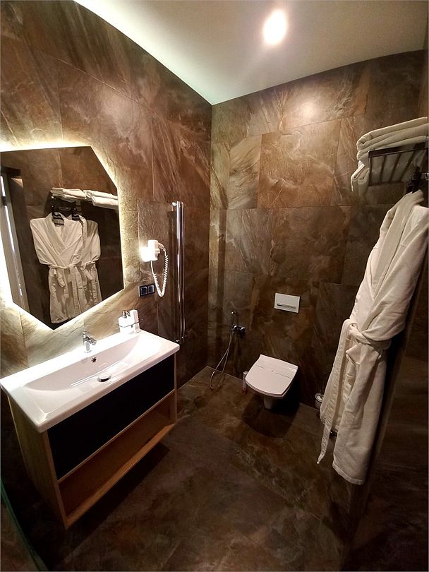 два телевизора, Wi-Fi, кондиционер, светильник, настольные лампы, фен, электронные замки, душевая кабина, биде, халаты, банные полотенца, тапочки, гигиенические средства, две односпальные или большая двуспальная кровать, детская кровать, тумбы, стулья, шкаф для одежды, вешалки, журнальный столик, обеденный стол, багажная тумба, зеркало, пуфики, письменные принадлежности, чайный набор, набор посуды, обслуживание номеров, информационная карта, меню, сейф, чайник, унитаз, раковина, косметическое зеркало, питьевая вода, ковровое покрытие, отопление, кулер на этаже, плиточное покрытие, вид на реку, общая ванная комната, стаканы, столовые приборы, туалетный столик, кофейный столик, стол, туалетный столик, туалетные средства, диван-кровать, раскладной диван, внутренний телефон, телевизор с плоским экраном, москитная сетка, вид на горы, номер для некурящих, пуфик, общественный бассейн, гигиенический душ, фригобар, без питомцевВ гостиничном номере