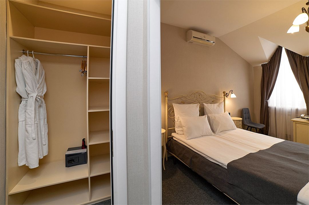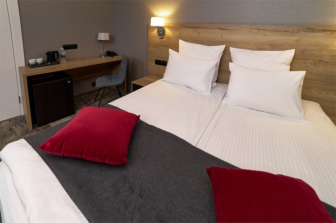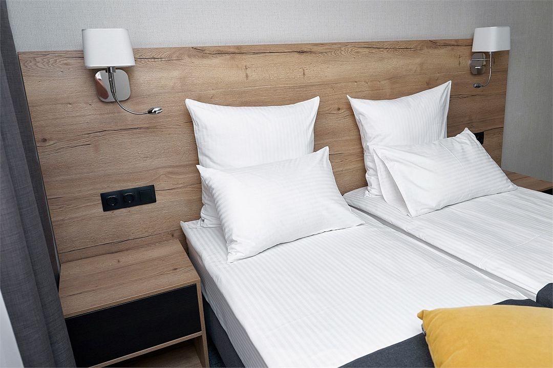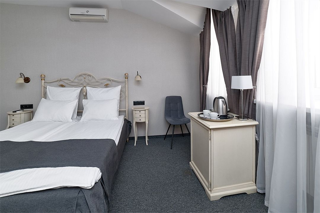 Номер категории стандарт выполнен в разных стилях. В номере двуспальная кровать или две односпальные кровати . При бронировании можно указать предпочтения. Наличие балкона в каждом номере.Услуги и удобства