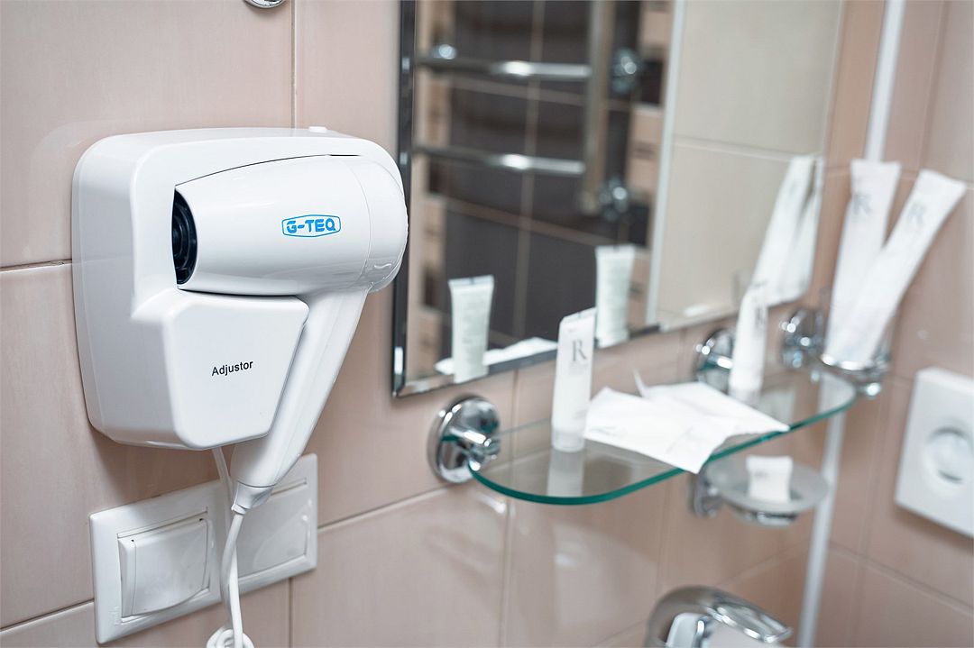 Wi-Fi, кондиционер, светильник, настольные лампы, фен, электронные замки, ванная комната, душевая кабина, халаты, банные полотенца, тапочки, две односпальные или большая двуспальная кровать, тумбы, шкаф для одежды, вешалки, зеркало, обслуживание номеров, информационная карта, меню, чайник, унитаз, раковина, косметическое зеркало, питьевая вода, ковровое покрытие, отопление, кулер на этаже, вид на реку, стаканы, стул, стол, туалетные средства, внутренний телефон, телевизор с плоским экраном, москитная сетка, гостиничная парфюмерия, вид на горы, номер для некурящих, пуфик, общественный бассейн, уборка номера, шапочка для душа, без питомцевВ гостиничном номере