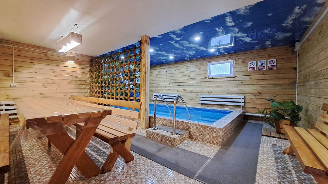 Инфраструктура: тапочки, бассейн, шапочкиВремя работы: до 23.00Баня рассчитана до 10 человек и минимальное время посещения 2 часа. Подогрев бассейна 25-27*С, размеры 4*2,5*1,5 м.
