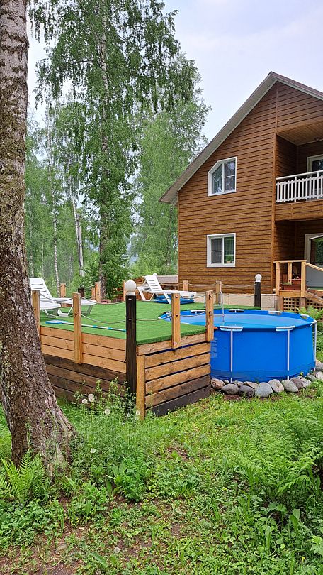 Тип бассейна: открытый бассейн, каркасный бассейнРядом с бассейном: шезлонгиРазмеры: 3 x 3 мПлощадь: 9 м²Глубина: 100 смНа территории оборудован летний бассейн с уютной зоной отдыха.