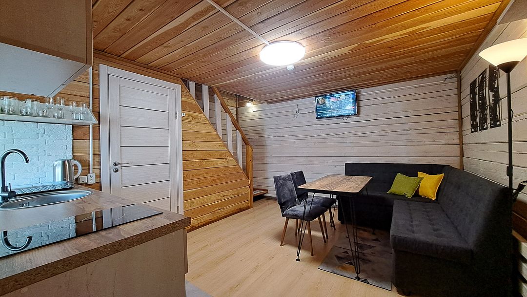 Дом 2 этажа, по 3 номера на каждом этаже. В каждом номере санузел (душ, туалет), смарт-ТВ.