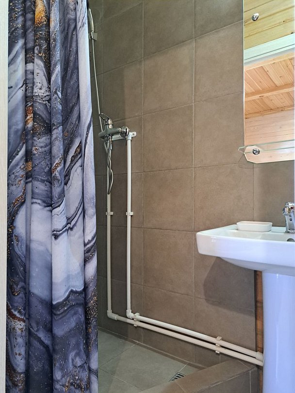 В доме есть всё для комфортного проживания: санузел (душ, раковина, туалет) с горячей водой (собственный бойлер).