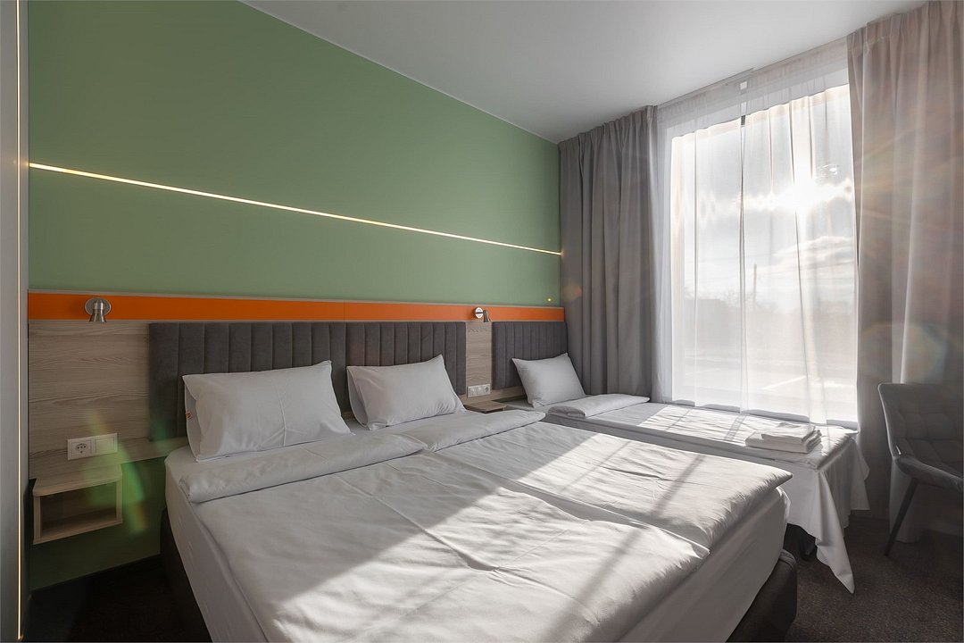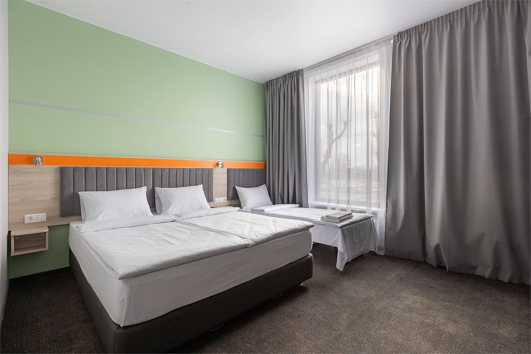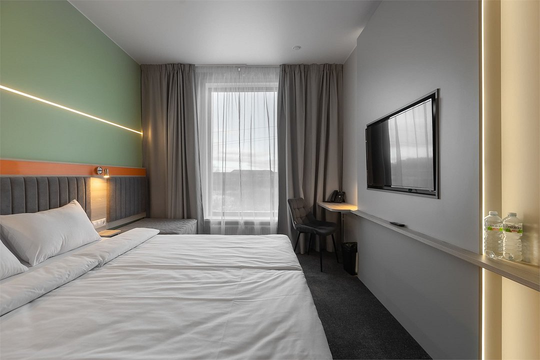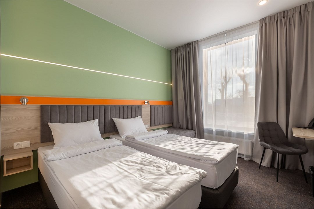 Номер площадью 18 м2 с 2 односпальными кроватями с анатомическим матрасом рассчитан на 2 взрослых и 1 ребенка. Для детей до 5 лет включительно проживание в одном номере со взрослыми предоставляется бесплатно на отдельном спальном месте. По запросу может быть предоставлена детская кроватка (для детей от 0 до 3 лет). В номере: Кровати с ортопедическими матрасами, телевизор, мини-бар, кондиционер, телефон. В собственной ванной комнате есть все необходимое для путешественников: набор полотенец, туалетно-косметические принадлежности, фен тапочки. Для комфортного отдыха в номерах используются светонепроницаемые шторы и улучшенная звукоизоляция. Доступ к высокоскоростному интернету и рабочий уголок позволяют оперативно и комфортно решать рабочие вопросы. Размещение с домашними животными возможно за дополнительную плату только по предварительному согласованию с отелем. Собаки весом до 5 кг, кошки. Не более 1 питомца в номере. Стоимость размещения домашних животных - 1000 руб в сутки, депозит - 5000 руб.Услуги и удобства