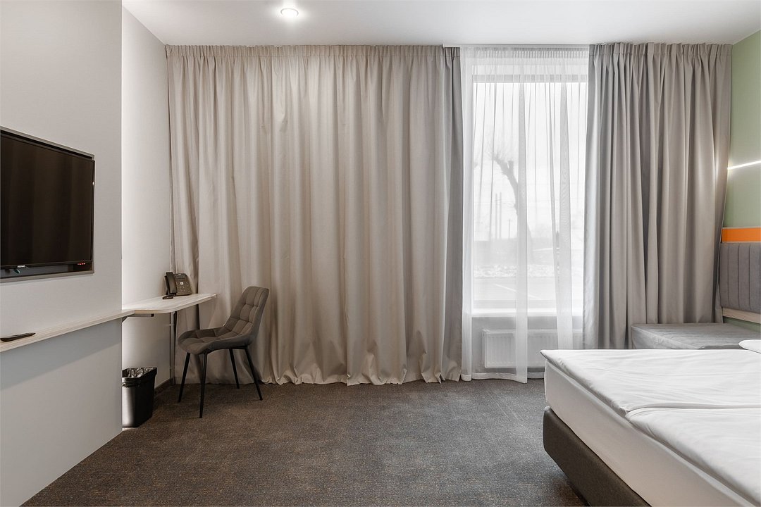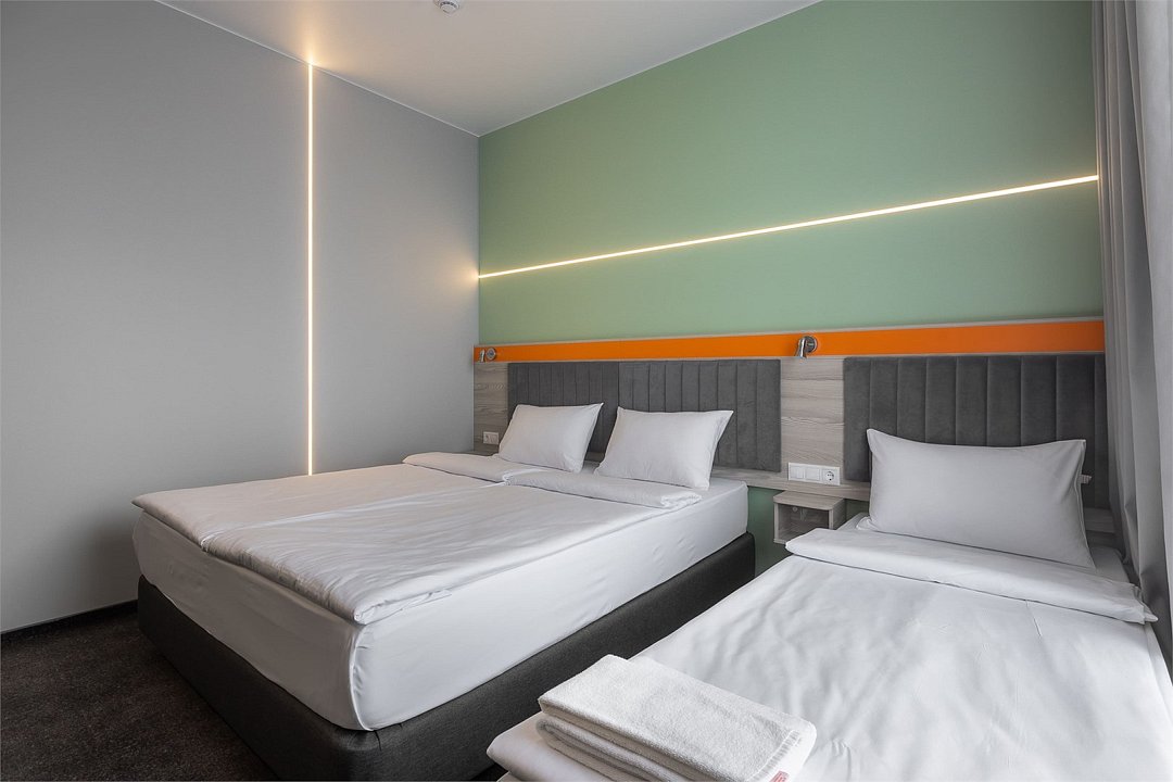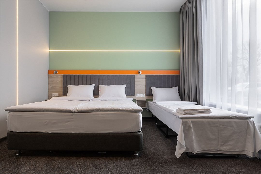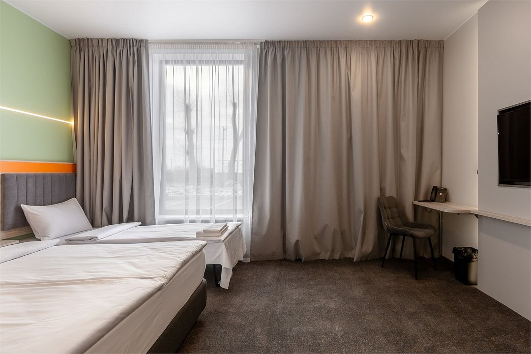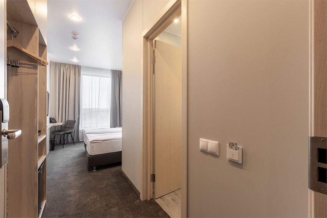 Номер площадью 18 м2 с 2 односпальными кроватями с анатомическим матрасом рассчитан на 2 взрослых и 1 ребенка. Для детей до 5 лет включительно проживание в одном номере со взрослыми предоставляется бесплатно на отдельном спальном месте. По запросу может быть предоставлена детская кроватка (для детей от 0 до 3 лет). В номере: Кровати с ортопедическими матрасами, телевизор, мини-бар, кондиционер, телефон. В собственной ванной комнате есть все необходимое для путешественников: набор полотенец, туалетно-косметические принадлежности, фен тапочки. Для комфортного отдыха в номерах используются светонепроницаемые шторы и улучшенная звукоизоляция. Доступ к высокоскоростному интернету и рабочий уголок позволяют оперативно и комфортно решать рабочие вопросы. Размещение с домашними животными возможно за дополнительную плату только по предварительному согласованию с отелем. Собаки весом до 5 кг, кошки. Не более 1 питомца в номере. Стоимость размещения домашних животных - 1000 руб в сутки, депозит - 5000 руб.Услуги и удобства