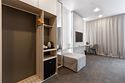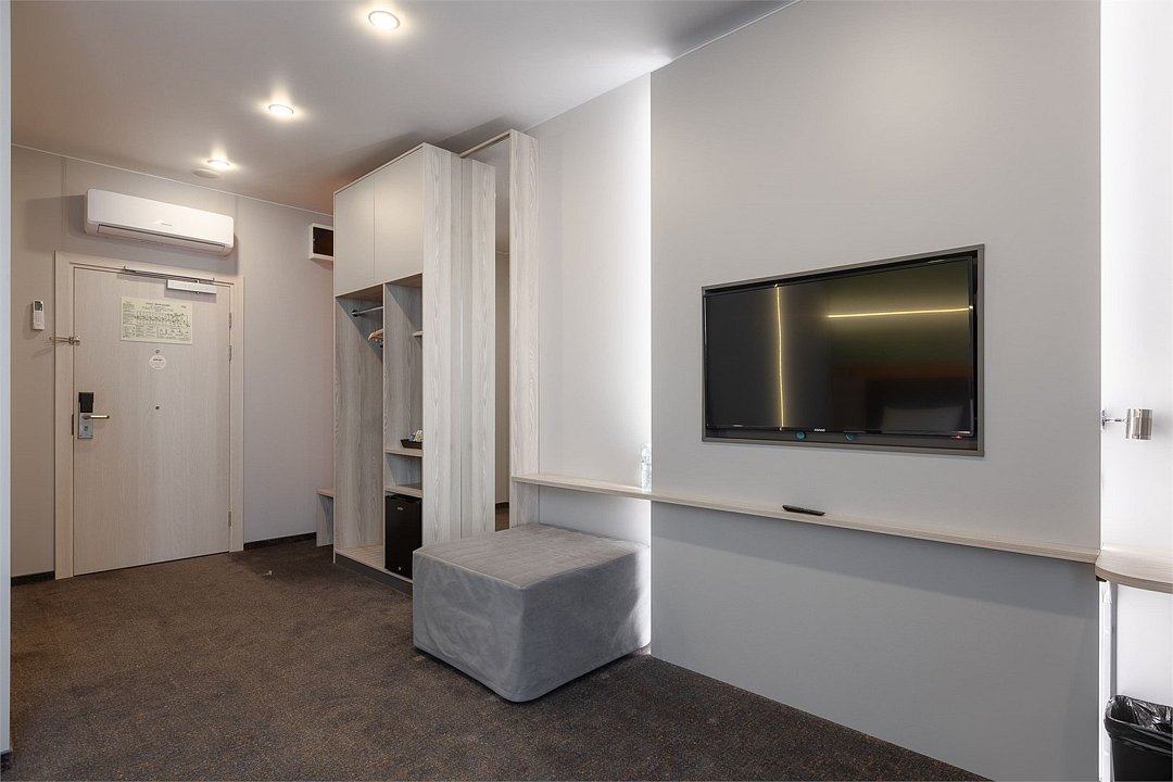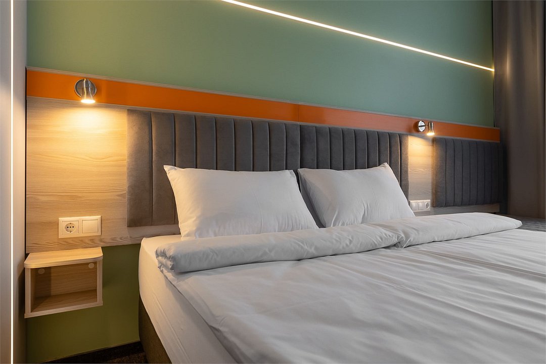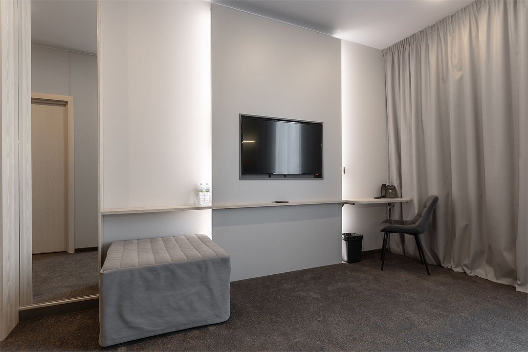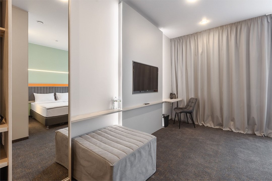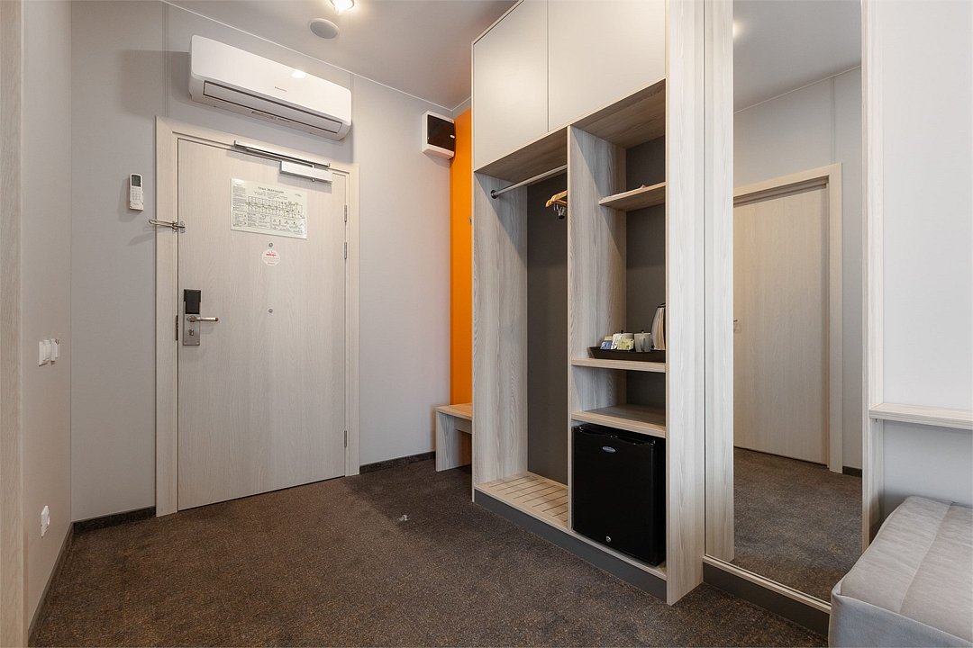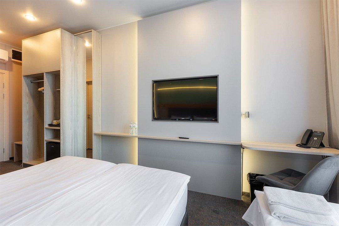Номер площадью 18 м2 с 1 двуспальной кроватью с анатомическим матрасом рассчитан на 2 взрослых и 1 ребенка. Для детей до 5 лет включительно проживание в одном номере со взрослыми предоставляется бесплатно на отдельном спальном месте. По запросу может быть предоставлена детская кроватка (для детей от 0 до 3 лет). В номере: Кровать с ортопедическим матрасом, телевизор, мини-бар, кондиционер, телефон. В собственной ванной комнате есть все необходимое для путешественников: набор полотенец, туалетно-косметические принадлежности, фен, тапочки. Для комфортного отдыха в номерах используются светонепроницаемые шторы и улучшенная звукоизоляция. Доступ к высокоскоростному интернету и рабочий уголок позволяют оперативно и комфортно решать рабочие вопросы. Размещение с домашними животными возможно за дополнительную плату по предварительному согласованию с отелем. Собаки весом до 5 кг, кошки. Не более 1 питомца в номере. Стоимость размещения домашних животных - 1000 руб в сутки, депозит - 5000 руб.Услуги и удобства