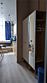 Номер-студия с панорамными окнами в бежево-серых тонах. Индивидуальная ванная комната расположена вне номераУслуги и удобства