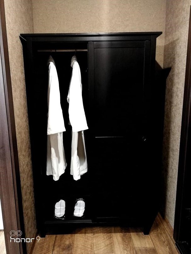 Wi-Fi, кондиционер, фен, халаты, банные полотенца, тапочки, косметические средства, двуспальная кровать, стулья, шкаф для одежды, вешалки, обеденный стол, чайный набор, обслуживание номеров, информационная карта, меню, минеральная вода, чайник, унитаз, раковина, питьевая вода, отопление, душ, вид на город, стаканы, стол, туалет, цифровое тв, телевизор с плоским экраном, мини-холодильник, москитная сетка, шкаф-купе, номер для некурящихВ гостиничном номере