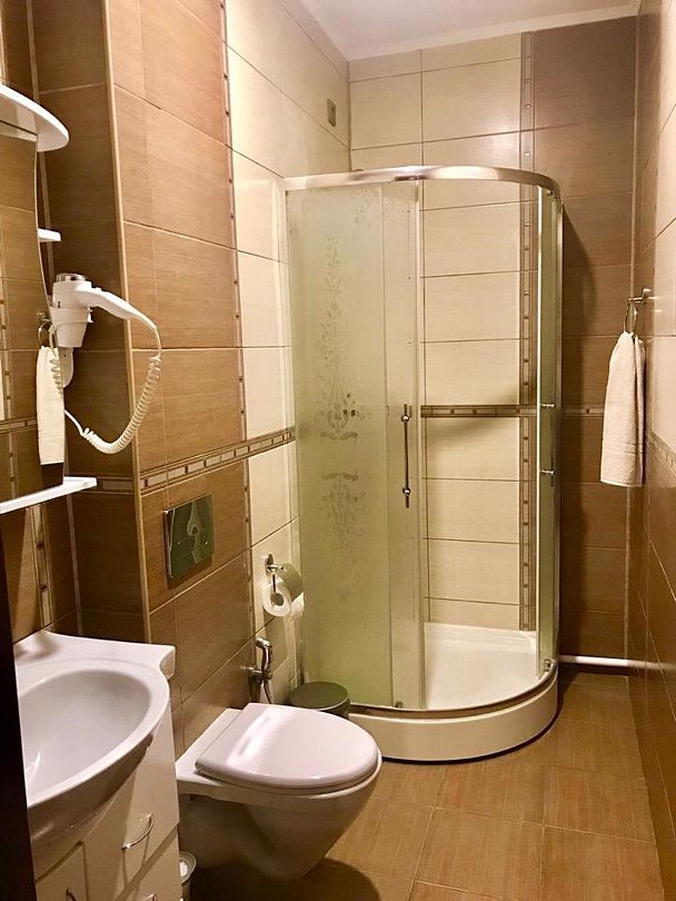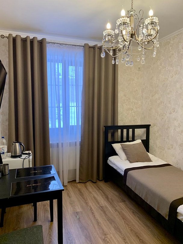 Двухэтажный корпус отеля разместился на тихой улице города среди частого сектора. Отдыхающих ожидают небольшие уютные номера, оснащенные индивидуальным санузлом с душем. Интерьер в комнатах выдержан в приятной цветовой гамме, с использованием пастельных, охристых и шоколадных оттенков. Все номера укомплектованы необходимой техникой: есть кондиционер, плазменный телевизор, фен, электрочайник.