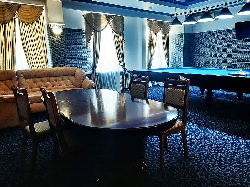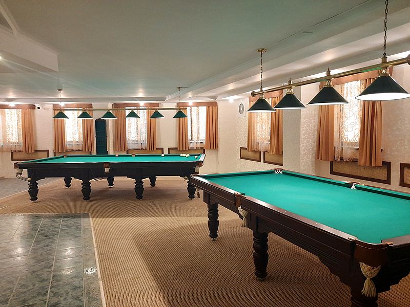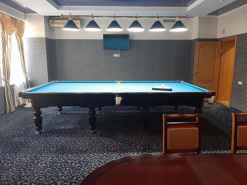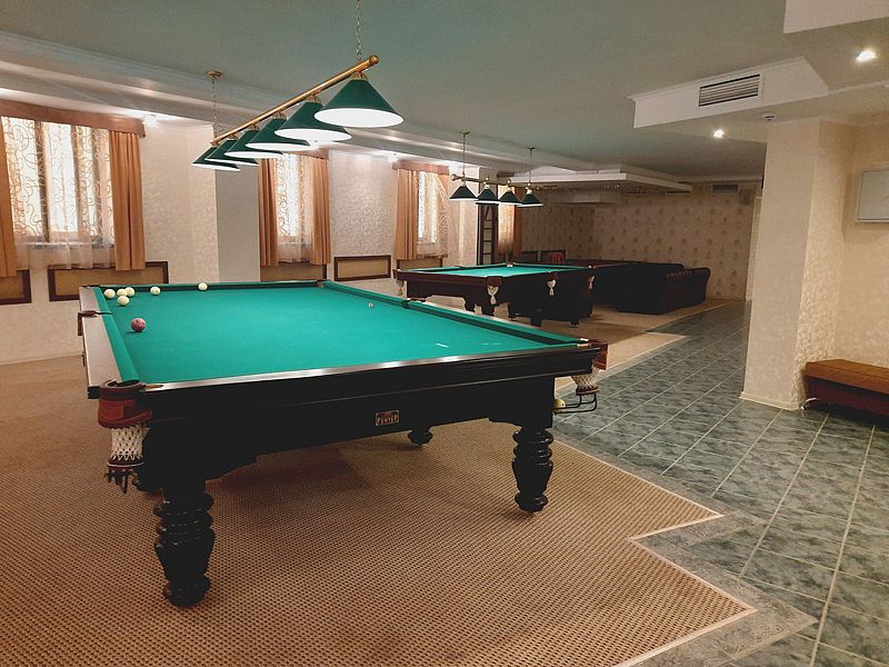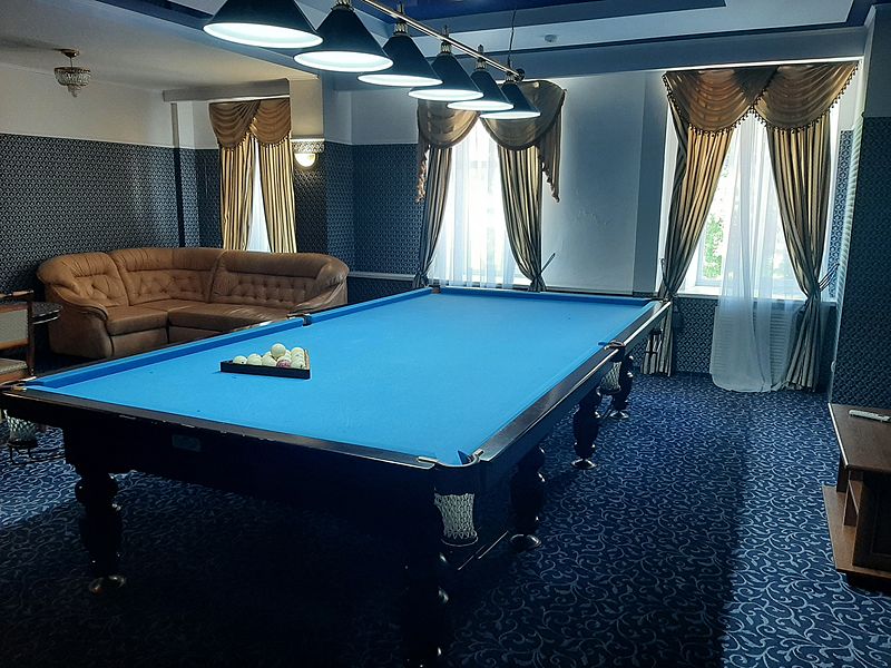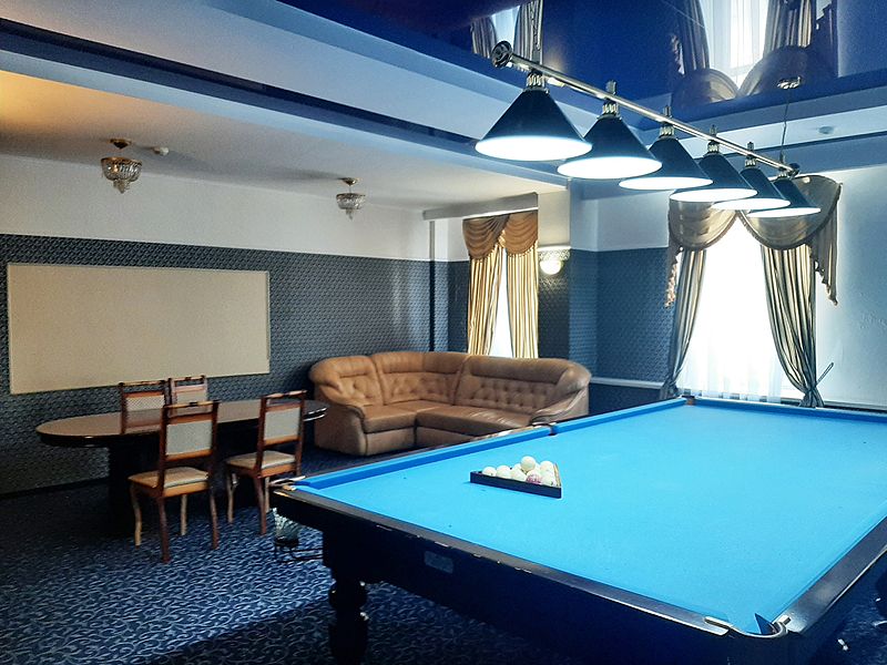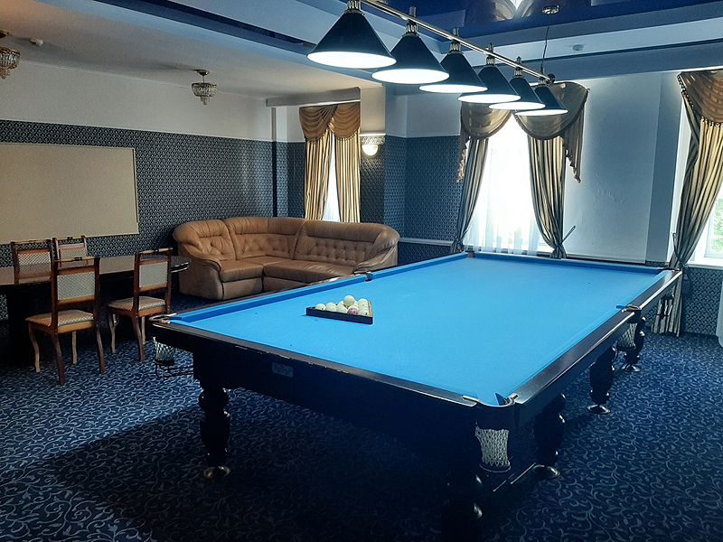Бильярдная комната доступна при выборе номера «Люкс с бильярдом и сауной», а также в СПА-комплексе отеля.