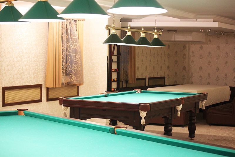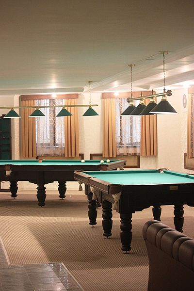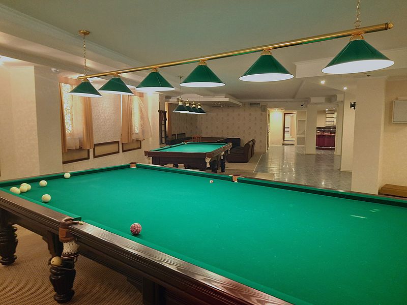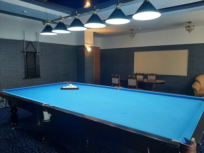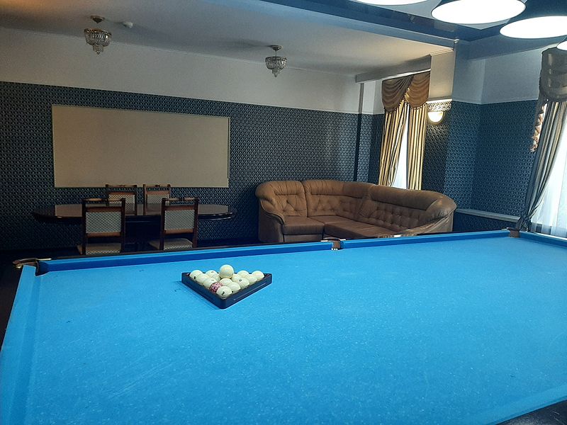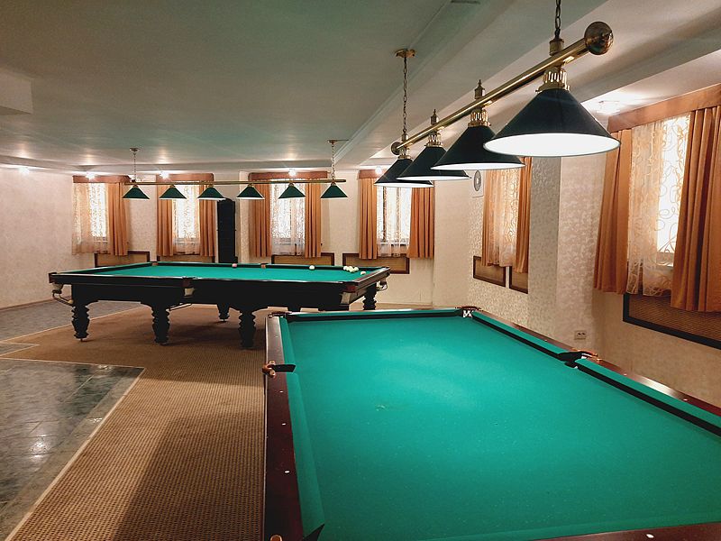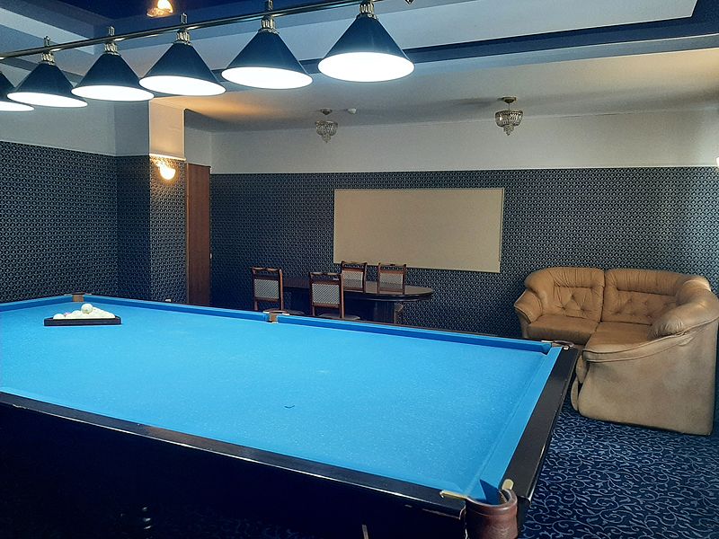 Бильярдная комната доступна при выборе номера «Люкс с бильярдом и сауной», а также в СПА-комплексе отеля.