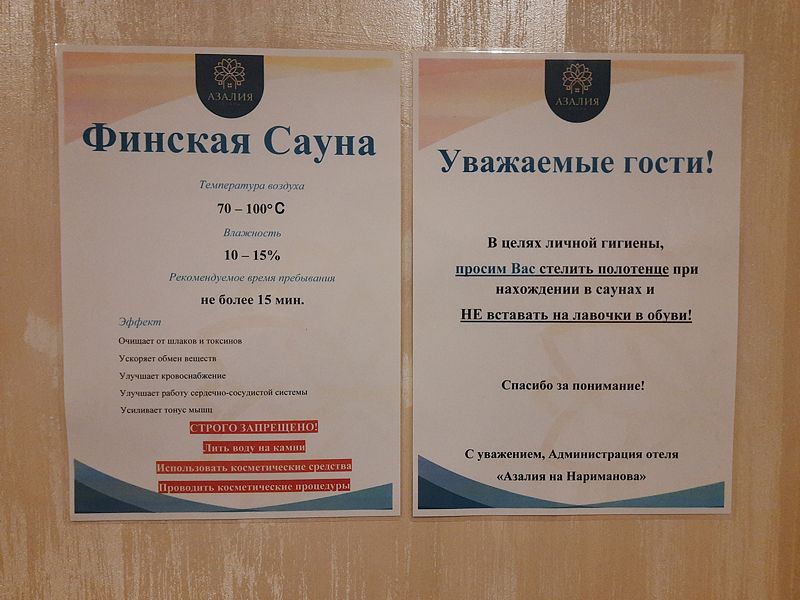 Сауна доступна при выборе номеров: «Люкс с бильярдом и сауной», «Двухместный номер с сауной». Также сауна имеется в СПА-комплексе отеля.