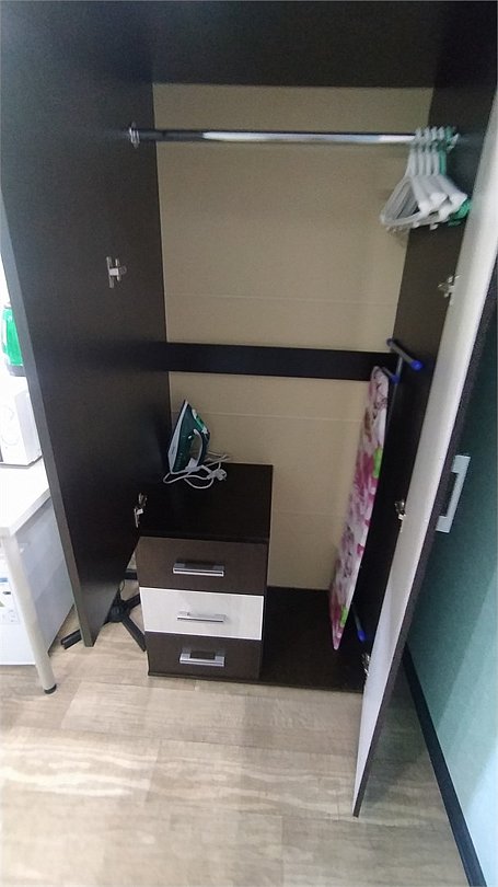телевизор, Wi-Fi, холодильник, фен, вентилятор, микроволновая печь, утюг, санузел, двуспальная кровать, стулья, шкаф для одежды, обеденный стол, чайник, душ, вид во двор, стол, диван-кроватьВ номере