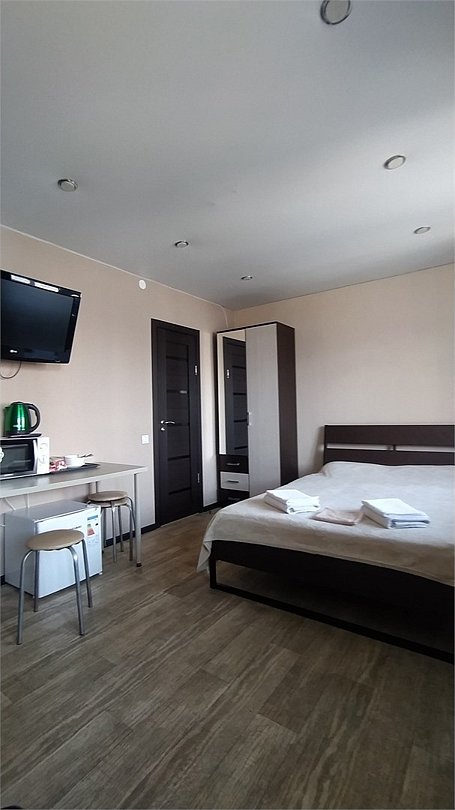 Wi-Fi, интернет, холодильник, система климат-контроля, фен, вентилятор, утюг, санузел, двуспальная кровать, шкаф для одежды, чайник, отопление, душ, вид на город, стул, стол, туалетные средства, цифровое тв, телевизор с плоским экраном, мини-холодильник, шкаф-купе, телевизор со Smart TVВ номере