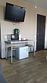 телевизор, Wi-Fi, холодильник, система климат-контроля, фен, микроволновая печь, утюг, санузел, двуспальная кровать, гладильная доска, шкаф для одежды, вешалки, обеденный стол, зеркало, чайник, отопление, душ, вид на город, стул, стол, холодильный шкафВ номере