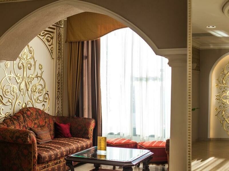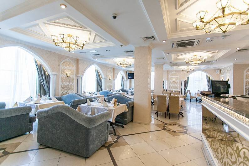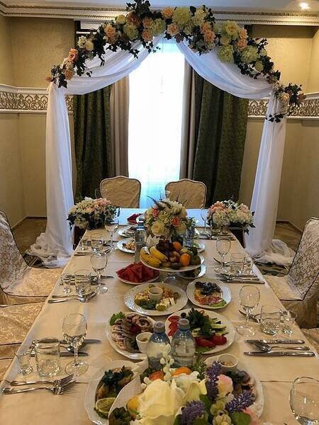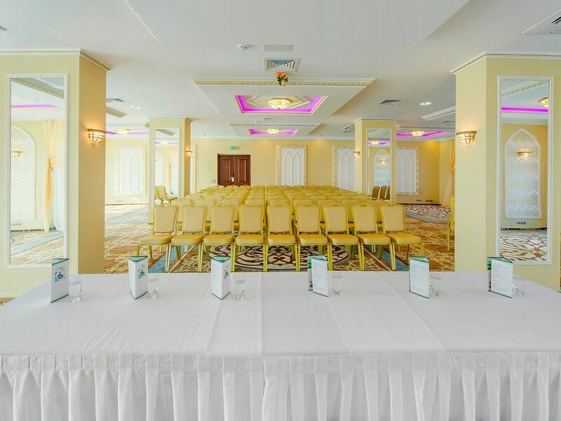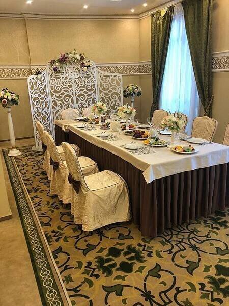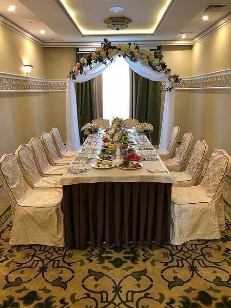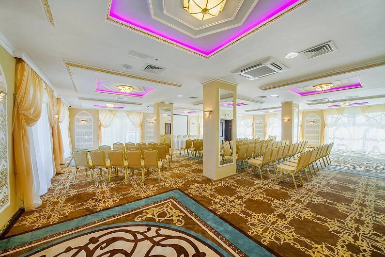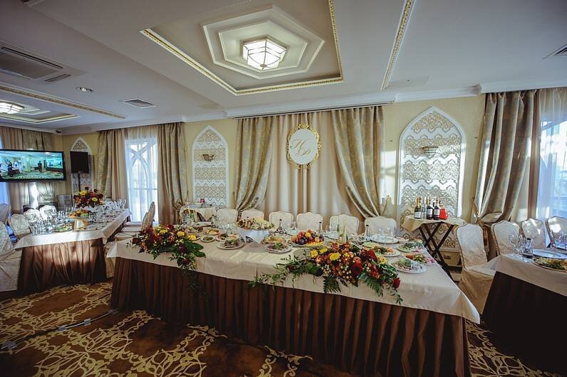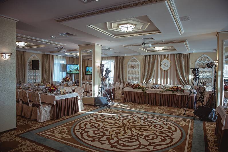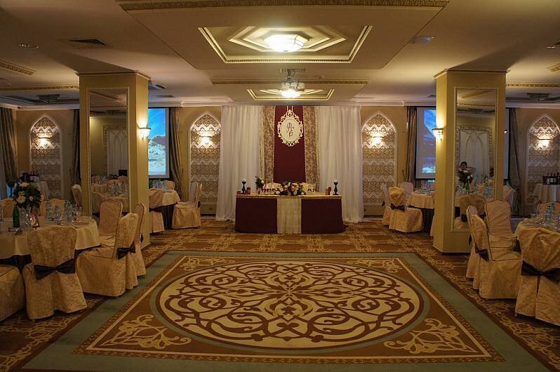 Зал сочетает в себе прекрасные интерьеры, светлые тона, золото, напольное покрытие нежных тонов, что помогает создать атмосферу современного Востока. Деликатный сервис и индивидуальное обслуживание позволяют обстоятельно насладиться проведением торжества вместимостью от 10 до 24 человек.