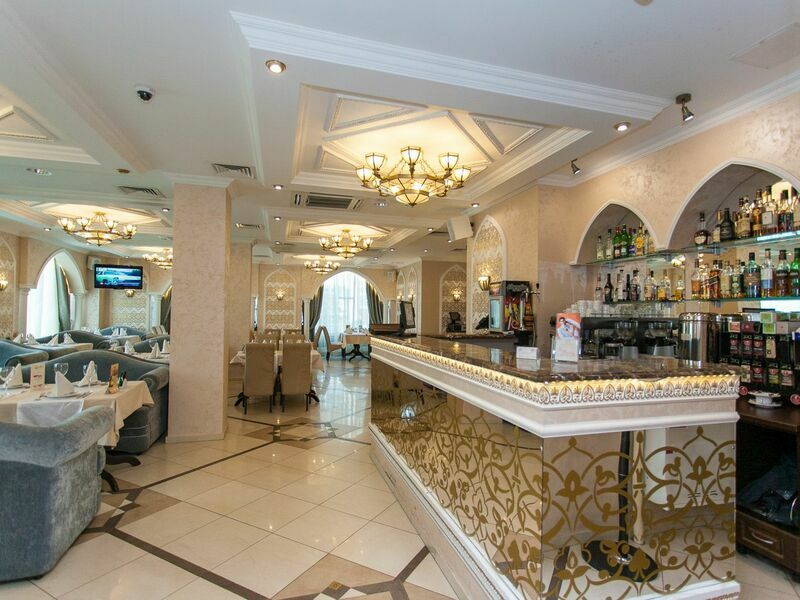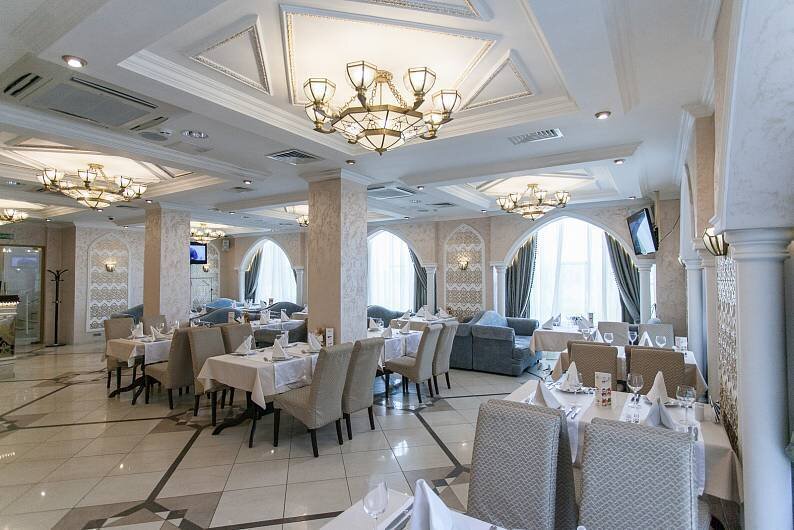 Интерьер ресторана на 1 этаже выполнен в восточном стиле. Превосходное место как для проведения торжеств на высшем уровне, так и для удивительного ужина в кругу близких и дорогих вам людей. Особой популярностью пользуется для проведения свадеб, никах, корпоративов и юбилеев вместимостью от 20 до 50 человек.