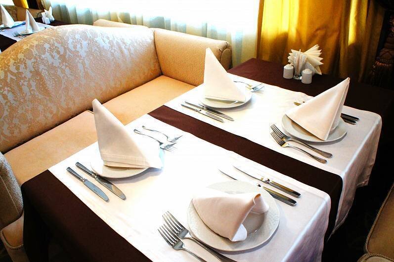 Вместительность ресторана - до 60 человек, что позволяет проводить свадьбы, юбилеи и корпоративные торжества, деловые обеды и презентации.