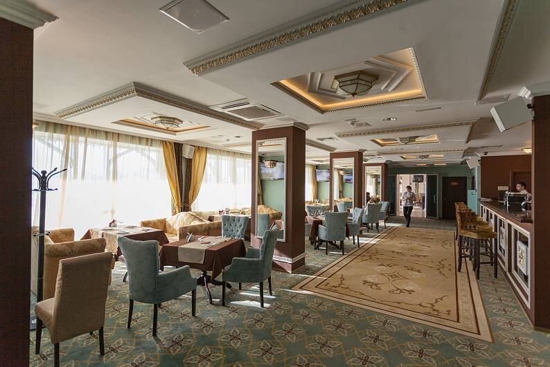 Расположен на 2 этаже с панорамным видом на город. Представлено меню из европейских, национальных и русских блюд, а также широкий выбор напитков и коктейлей. Работает круглосуточно.