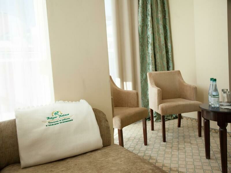 10-этажный современный отель, оснащенный лифтами, считается одним из самых красивых и высокотехнологичных гостиничных комплексов Казани. Помимо интересной архитектуры здание отличают интерьеры, оформленные в национальном татарском стиле. Номерной фонд «Биляр Палас отеля» рассчитан на единовременное размещение 248 человек. Гостям предлагаются 2-х местные номера категории Стандарт, Люкс, Студио, укомплектованные качественной мебелью и современной техникой.
