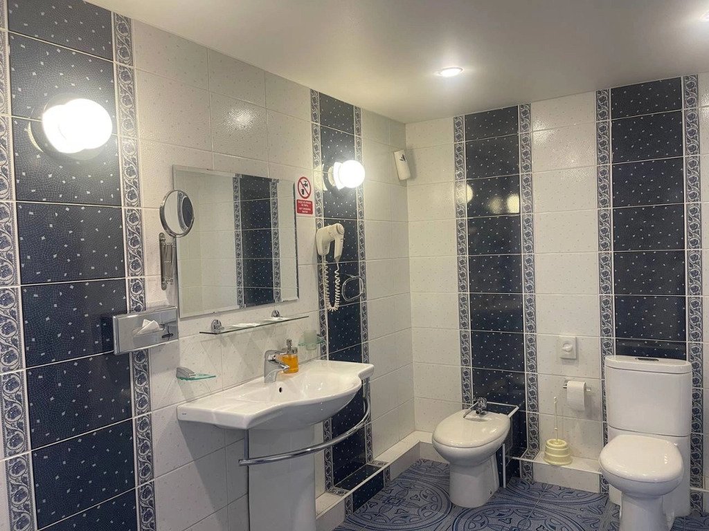 В номерах есть телевизор, халат и тапочки. Оснащение отличается в зависимости от категории номера.