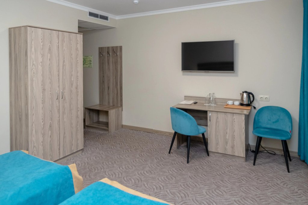 В номере гостей ждут телевизор и халат. Перечисленные услуги есть не во всех номерах.