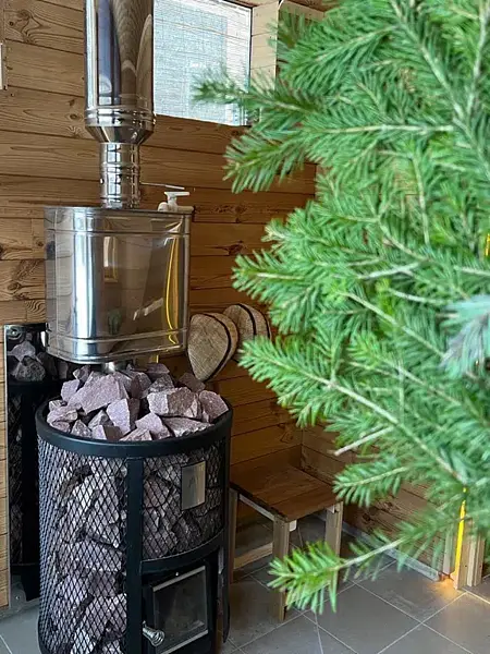 Инфраструктура: купель, зона отдыха, обливное ведро, душВ бане на дровах оживает сама природа, даря силы и энергию, обновляя душу и тело своим волшебным прикосновением.