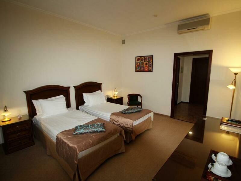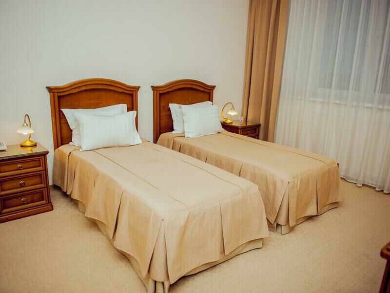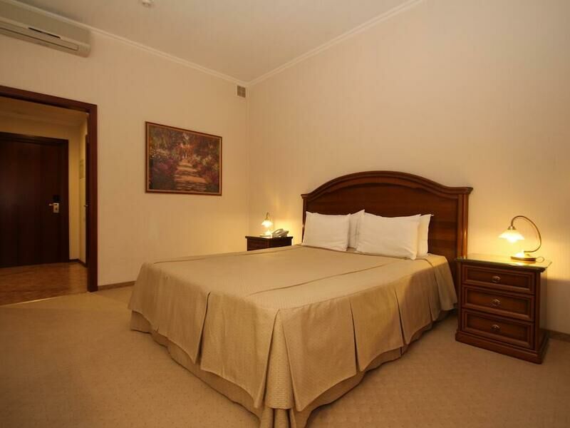 Современное 9-ти этажное здание отеля, оснащенное лифтами, рассчитано на размещение 102 человек. Гостям предлагаются стильные номера, оформленные в светлых оттенках, высоких категории комфорта – Улучшенный, Бизнес и Люкс. В номерах есть вся необходимая бытовая техника, удобная и качественная мебель санузел с ванной и косметическими принадлежностями.