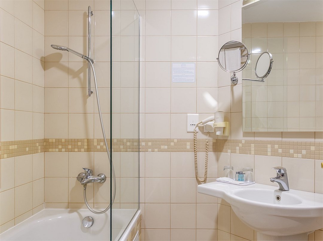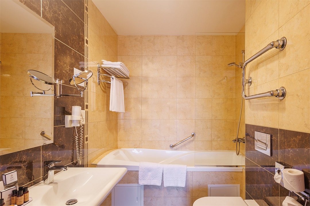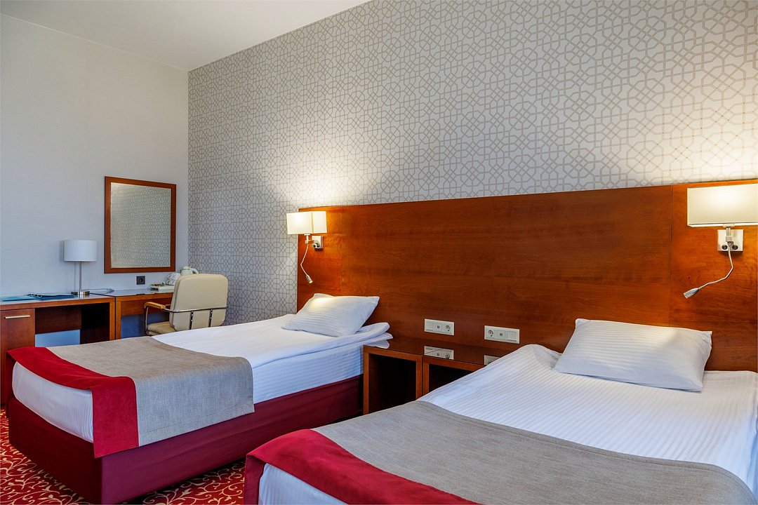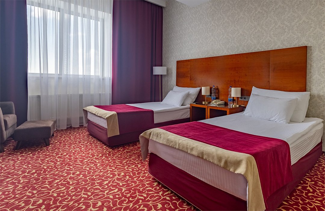 Номер данной категории предназначен для проживания 1 или 2 человек. Размещение ребенка возможно на дополнительном месте. В номере две полутороспальные кровати, рабочий стол, кондиционер, телефон, телевизор, чайная станция, сейф. В ванной комнате ванна, фен и все необходимые банные принадлежности.Услуги и удобства